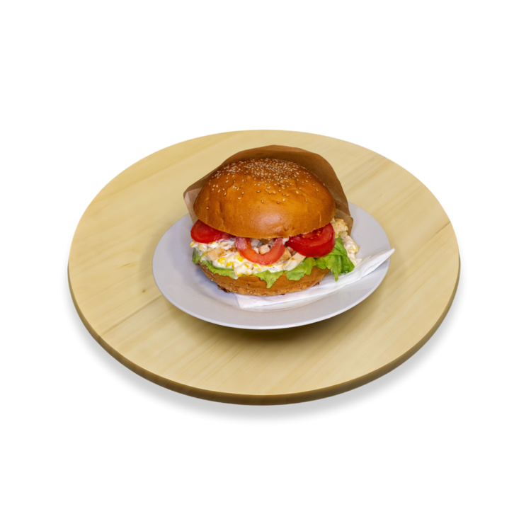 roston csirkemell, saláta levelek, majonézes kukoricasaláta, lila hagyma, paradicsom