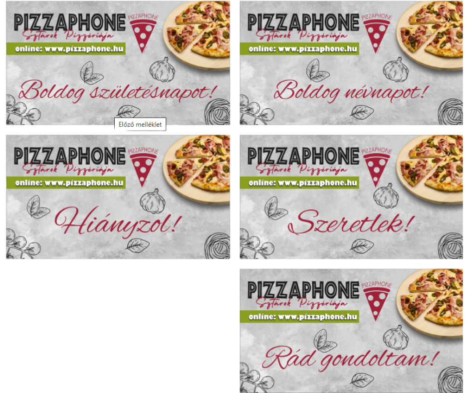 Küldj a Pizzaphone segítségével üdvözlő kártyát! Boldog Születésnapot! Boldog névnapot! Szeretlek! Hiányzol! Rád gondoltam!